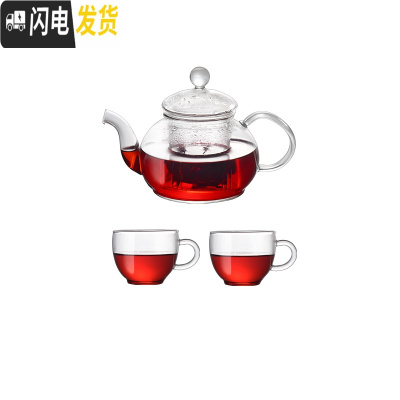 三维工匠花茶壶套装玻璃耐热家用过滤杯透明茶具蜡烛加热可高温泡水果红茶 内胆壶+2弧形杯