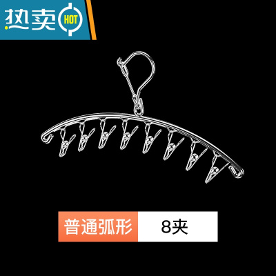 敬平特粗晾衣架晾晒架多夹子不锈钢多功能弧形袜子架防风家用宿舍衣架 [2.7加粗]弧形8夹 1个衣夹