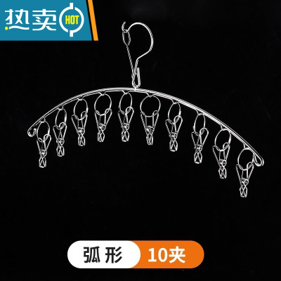 敬平特粗晾衣架晾晒架多夹子不锈钢多功能弧形袜子架防风家用宿舍衣架 [4.0超厚]弧形10夹 1个衣夹