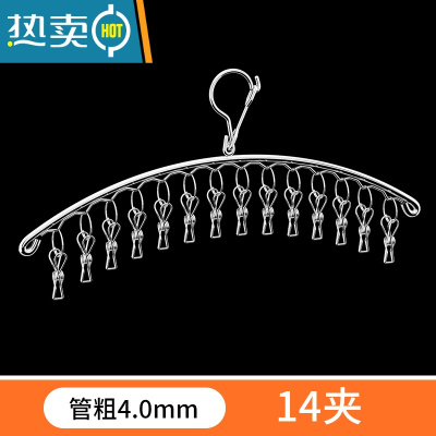敬平特粗晾衣架晾晒架多夹子不锈钢多功能弧形袜子架防风家用宿舍衣架 [4.0超厚]弧形14夹 1个衣夹