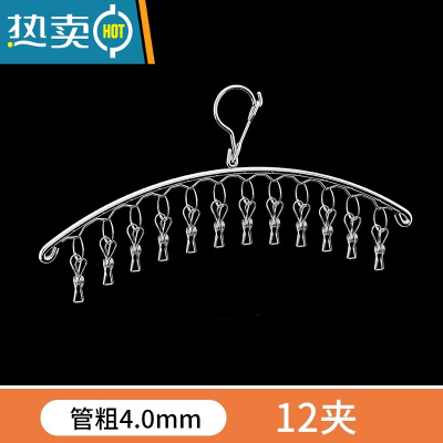 敬平特粗晾衣架晾晒架多夹子不锈钢多功能弧形袜子架防风家用宿舍衣架 [4.0超厚]弧形12夹 1个衣夹