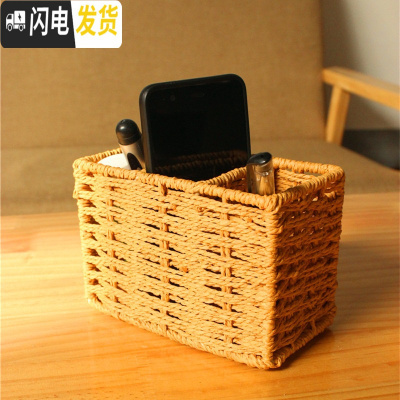 三维工匠创意手工编织遥控器收纳盒办公桌面笔筒 茶几杂物手机编筐小号 橘色