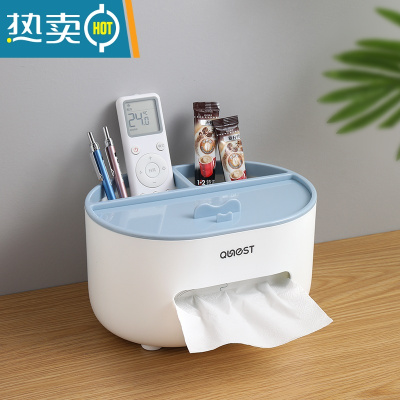 敬平桌面纸巾盒抽纸盒家用客厅餐厅茶几北欧简约多功能创意遥控器收纳 北欧蓝