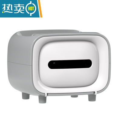 敬平创意多功能纸巾盒客厅茶几放遥控器的抽纸盒家用轻奢桌面收纳 经典灰