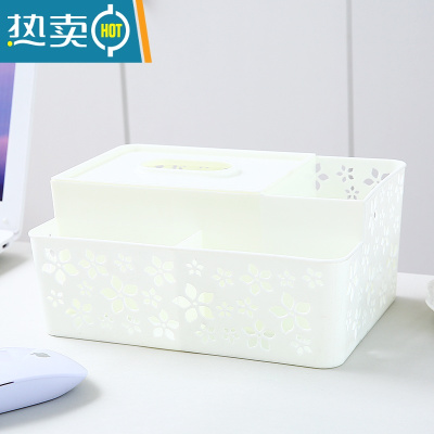 敬平多功能桌面纸巾盒创意遥控器收纳盒家用客厅茶几抽纸盒桌上置物架 白色