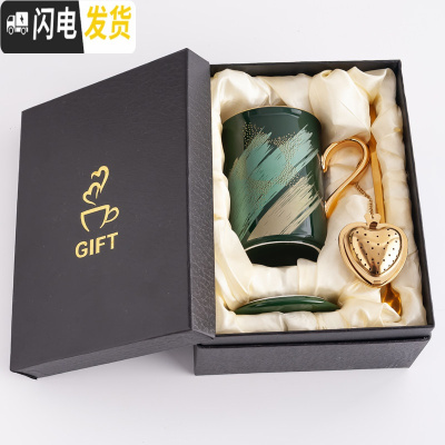 三维工匠创意简约陶瓷水杯北欧个性带盖勺大容量马克杯家用咖啡杯情侣杯子