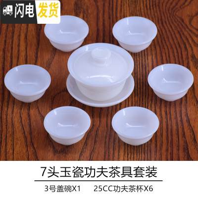 三维工匠白玉瓷功夫茶具套装家用景德镇白瓷茶具陶瓷简约茶杯礼盒 7头功夫茶具套装