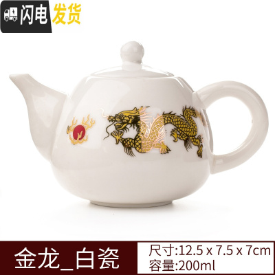 三维工匠紫砂壶功夫茶具茶壶套装家用紫砂壶茶壶纯手工泡茶壶白瓷茶壶套装 金龙白瓷茶壶