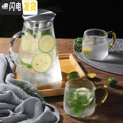 三维工匠 玻璃冷水壶家用大容量凉水壶饮料果汁壶凉开水壶柠檬扎壶 条子冷水壶