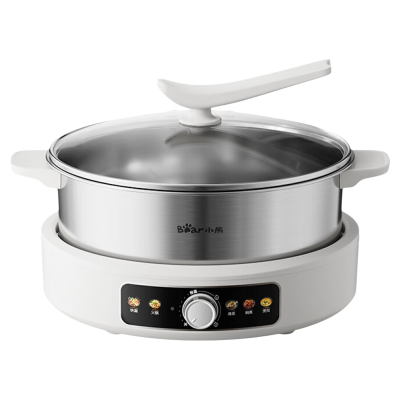 小熊电火锅家用电煮锅一体锅多功能5升大容量电热锅涮烤锅 白色