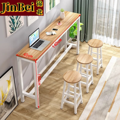 锦北家用吧台奶茶店高脚桌商业长条桌酒吧台桌椅组合140*40*100+3凳