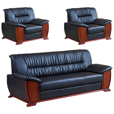 锦北 办公沙发老板皮沙发商务会客接待会议沙发组合 头层黑牛皮1+1+3