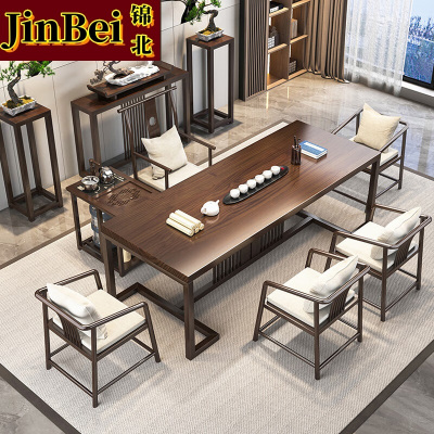 锦北茶桌椅组合新中式泡茶台现代办公室喝茶桌原木客厅家用茶台2.2米