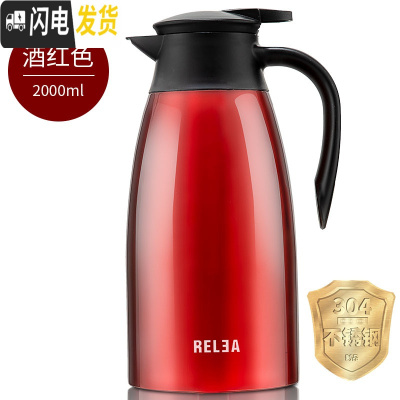 三维工匠304不锈钢家用保温壶 办公大容量开水暖瓶热水瓶保温水壶2 酒红色(2)