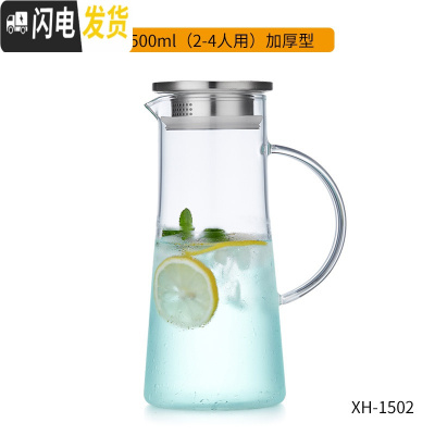 三维工匠家用冷水壶玻璃耐热高温凉白开水杯茶壶扎壶防爆大容量水瓶凉茶壶 新款1500凉水壶