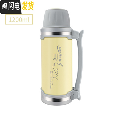 三维工匠保温杯大容量男女户外车载便携水壶学生宿舍办公室暖热开水瓶家用 浅黄色
