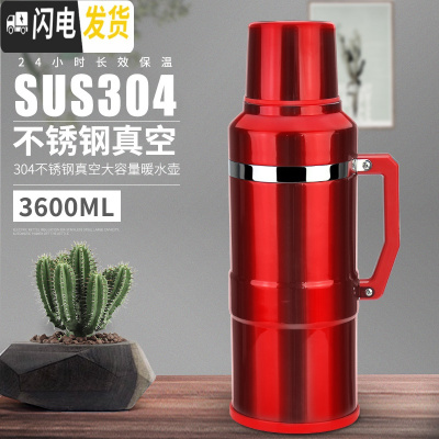 三维工匠不锈钢内胆全钢保温壶3.6大容量暖瓶开水瓶结婚喜庆热水瓶家用 红色3.6