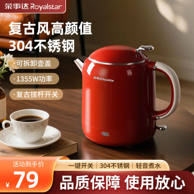 荣事达电热水壶家用不锈钢保温一体烧水壶自动断电大容量烧开水壶RS-KT1078复古红