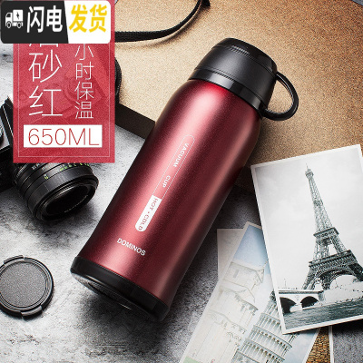 三维工匠大号保温杯男士 带杯子盖304不锈钢户外便携大容量保温水杯男刻字 磨砂红-大号-650