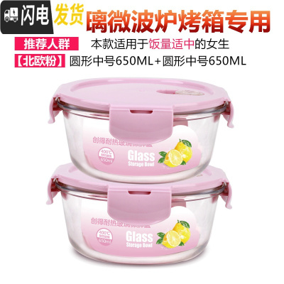 三维工匠微波炉饭盒便当盒成人男学生带盖玻璃保鲜盒圆形上班带饭盒女 A[北欧粉]中圆650+650