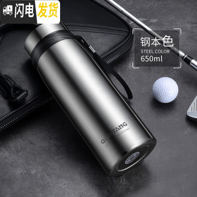 三维工匠大号保温杯男女650大容量不锈钢真空户外便携车载水杯子 钢本色-650