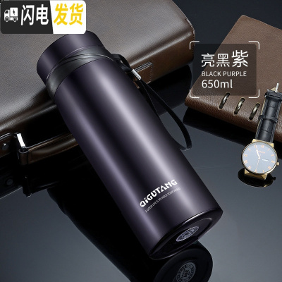 三维工匠大号保温杯男女650大容量不锈钢真空户外便携车载水杯子 亮紫色-650