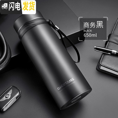 三维工匠大号保温杯男女650大容量不锈钢真空户外便携车载水杯子 商务黑-650