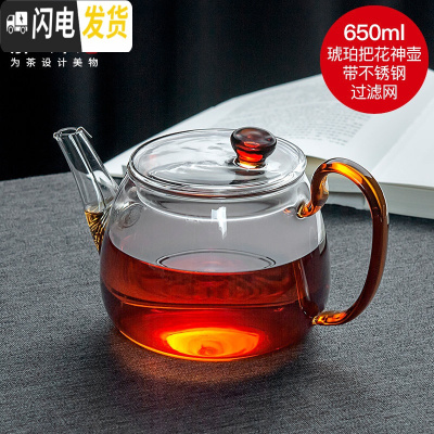 三维工匠玻璃花茶壶 透明耐热带盖过滤泡茶壶冲茶器 花茶茶具玻璃壶 玻璃壶花神壶650(琥珀款)