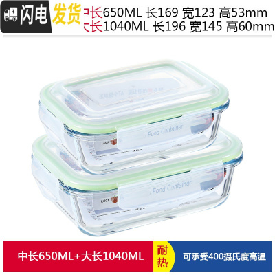 三维工匠上班族玻璃碗饭盒微波炉加热专用保鲜便当水果分隔带盖密封碗带饭 绿长650+长1040