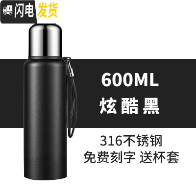 三维工匠全钢316保温杯大容量男士有盖650军保温瓶不锈钢水壶便携女 600黑色(316全钢)
