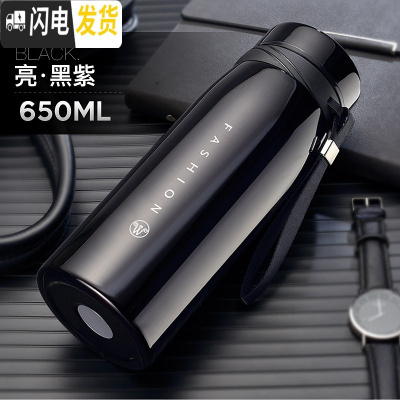 三维工匠保温杯大容量男女士学生水杯不锈钢保温壶户外便携1000杯子 黑紫色650