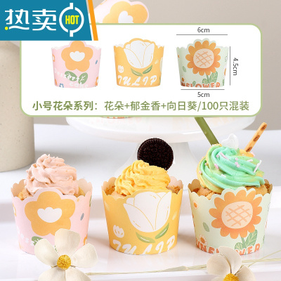 敬平纸杯蛋糕纸杯底托家用杯子空气炸锅专用烘焙蒸烤箱马芬模具 小号混装[花朵系列]100只烘焙纸