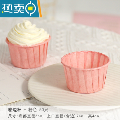 敬平纸杯蛋糕纸托烤箱空气炸锅专用烘焙马芬杯蒸烤两用杯 粉色卷边杯50只烘焙纸