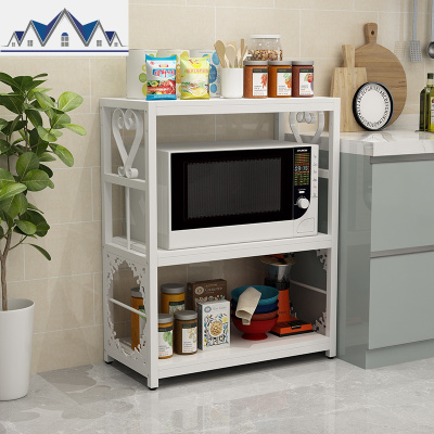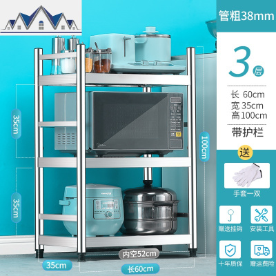 不锈钢微波炉置物架2层3层落地厨房收纳架子家用省空间双层烤箱架 三维工匠