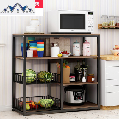厨房置物架落地式多层微波炉烤箱架调料储物柜蔬菜篮碗架子收纳架 三维工匠