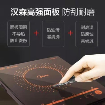 美的(Midea)家用电磁炉炒菜煮火锅大功率触控黑晶面板防水智能C21-RT2171 黑色