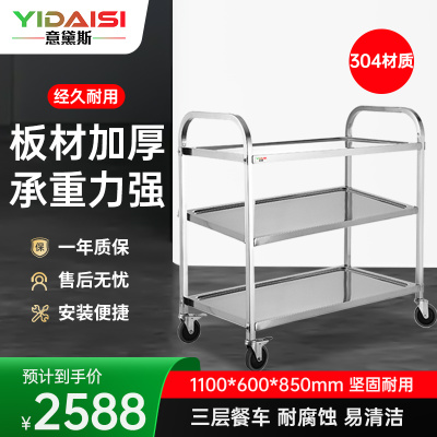 意黛斯 三层不锈钢送餐车手推车 收碗车收餐车 大号1100*600*850带万向轮 YDS-33CC116 304材质