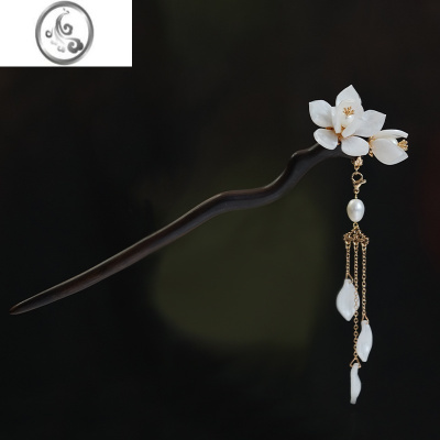 JiMi玉兰花发簪发钗古风黑檀木簪子汉服盘发百搭超仙气旗袍日常简约轻
