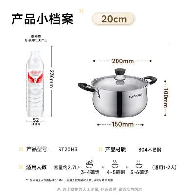 苏泊尔(SUPOR)汤锅加厚304不锈钢炖锅双耳防烫煮粥煮面锅燃气电磁炉通用ST20H3 20cm