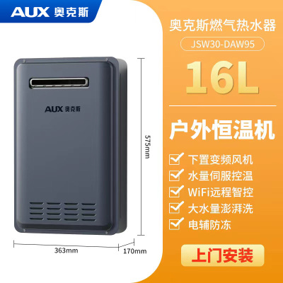 奥克斯燃气热水器室外机16升防雨防冻天然气恒温强排式变频零冷水16L银灰色 APP