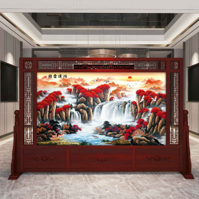 中式实木屏风 进大厅隔断 公司单位屏风酒店实木大座屏 特卖D款 整装