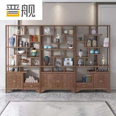晋舰 博古架多宝阁茶叶架子新中式客厅办公室隔断置物架 三联博古架