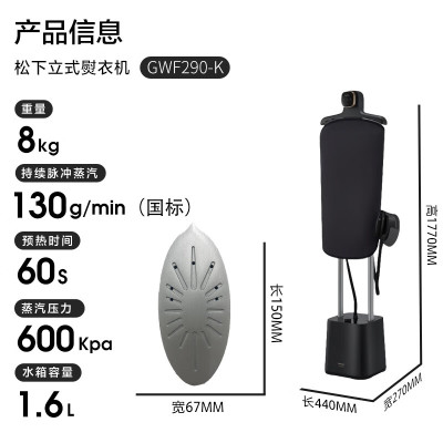 松下(Panasonic)家用立式高定黑珍珠熨护机挂烫机 纳诺怡护理增压手持电熨斗 NI-GWF290-K