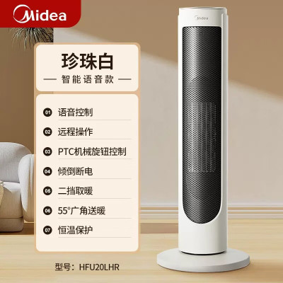 美的(Midea)智能语音取暖器家用小型立式节能暖风机冬季小太阳电暖器浴室HFU20LHR 白色