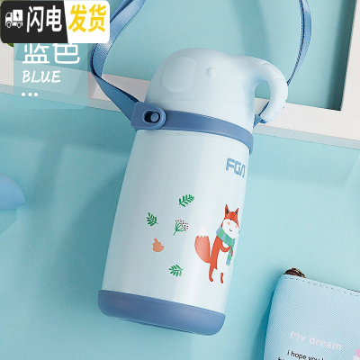 三维工匠儿童保温杯小学生直饮口水壶瓶便携幼儿园男女宝宝防摔水杯子 蓝色