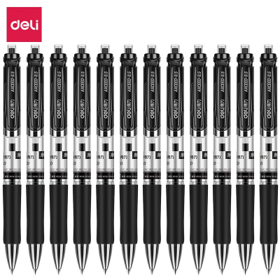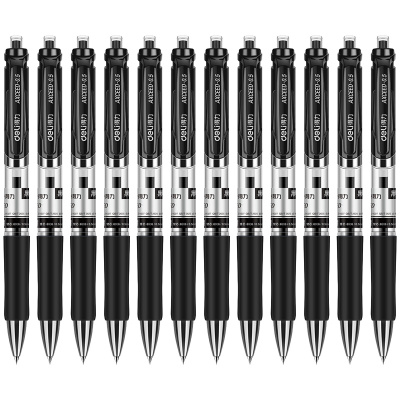 [精选]得力(deli) 按动中性笔 签字笔水笔黑色碳素笔办公 0.5mm 33388 12支