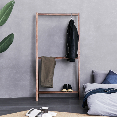 森美人黑胡桃挂衣架实木日式衣帽架落地卧室木质衣服架客厅收纳多功能
