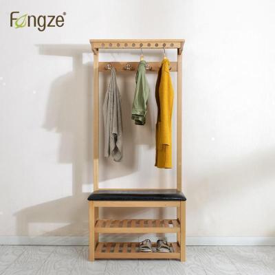 森美人实木简约衣帽架多功能口落地衣架家用换鞋凳鞋架FZ-90