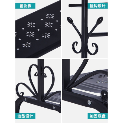 臻远 ZY4080139简约铁艺衣帽架落地衣架多功能挂衣服架子 黑色60
