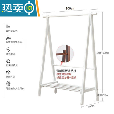 敬平实木衣帽架衣架落地家用卧室简易挂衣服架子简约现代晾衣服房间 全实木象牙白-单层100晾晒架